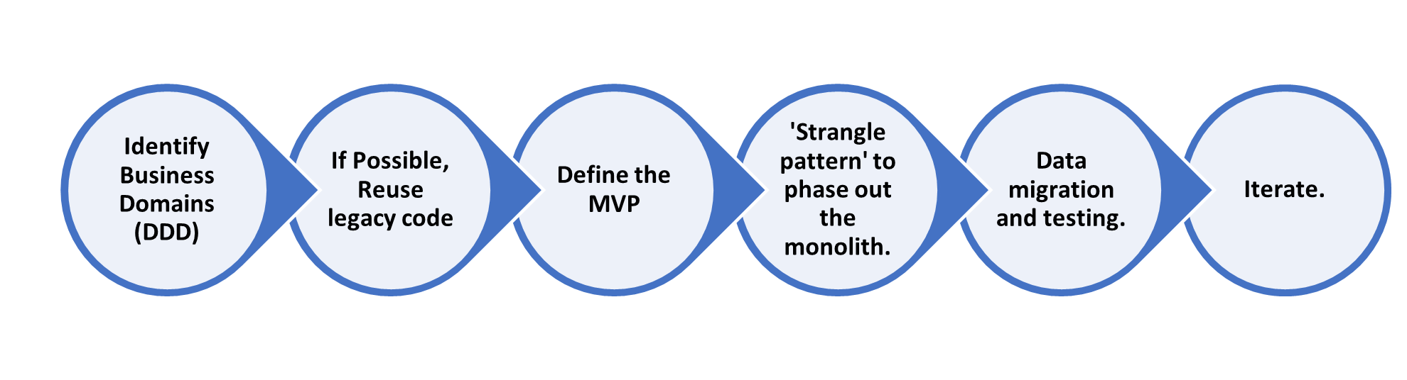 Gradual Decomposition: Initially, expose functionality via APIs within the monolith, decompose it as domain understanding evolves.